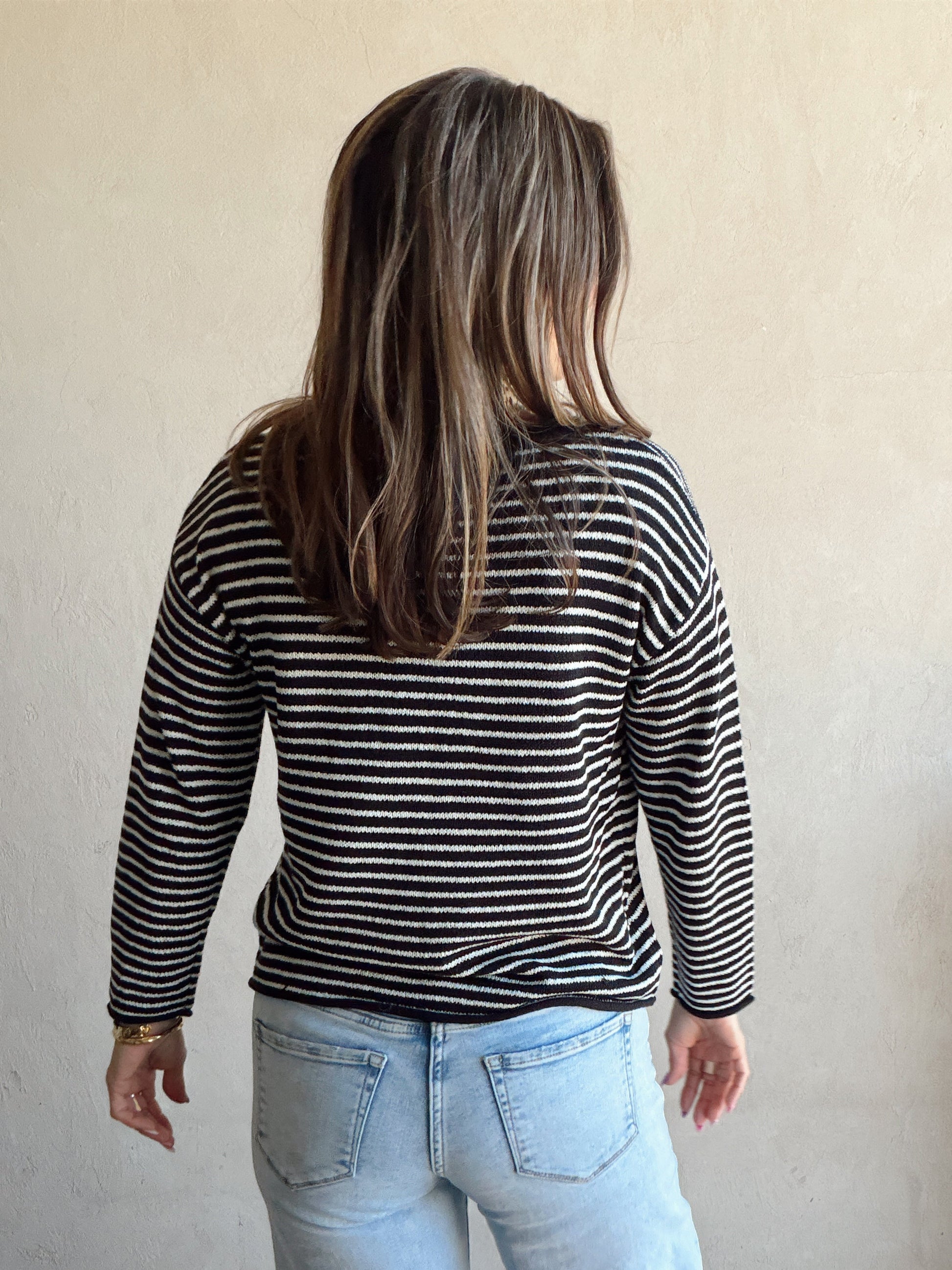 Maddie Stripe Sweater in Black & Ivory