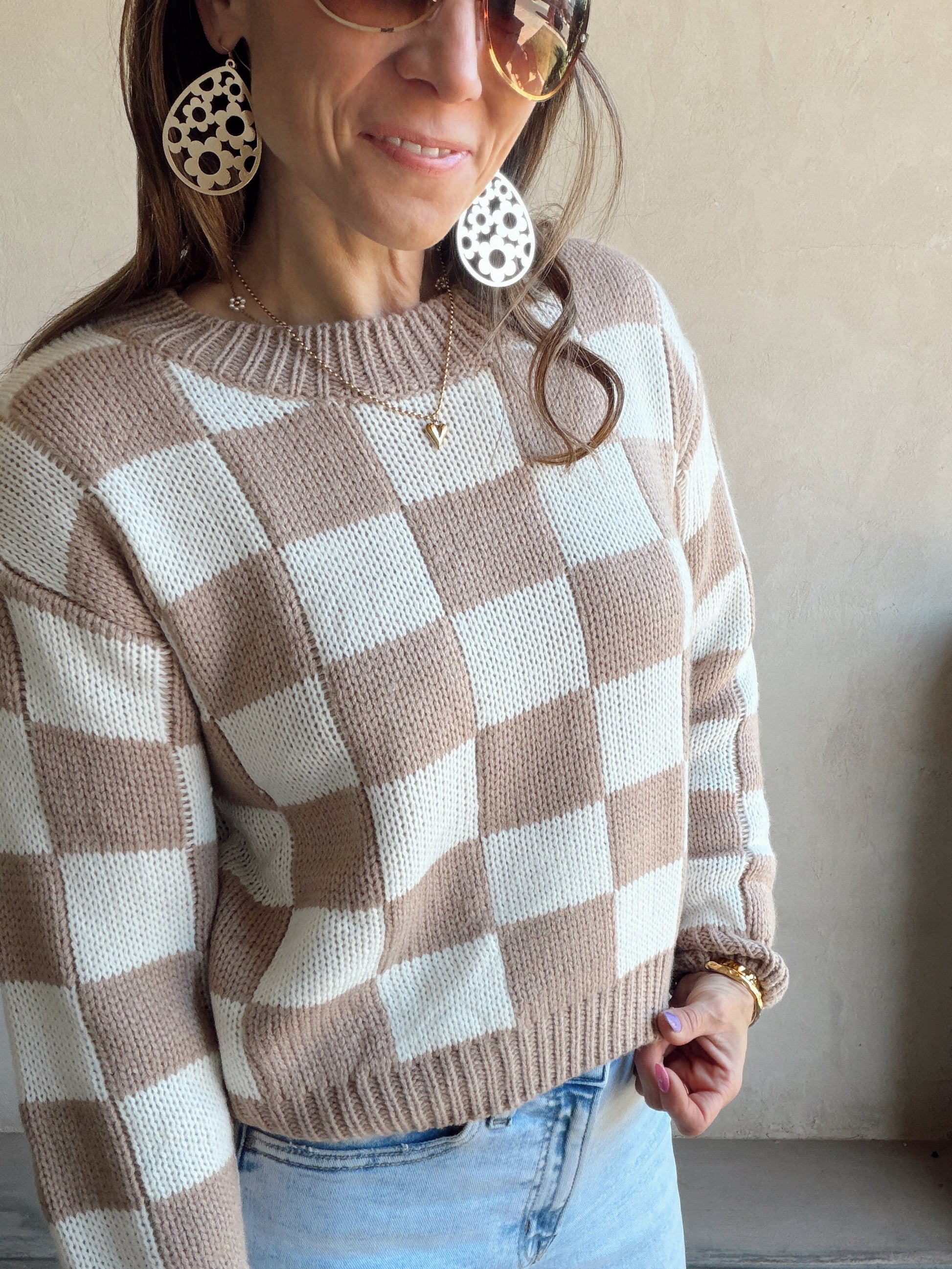 Sienna Check Sweater in Beige & Ivory