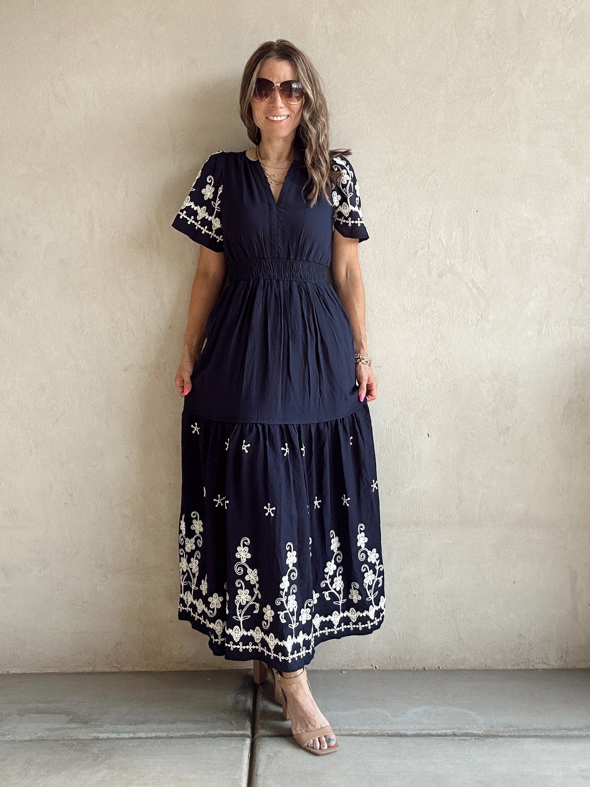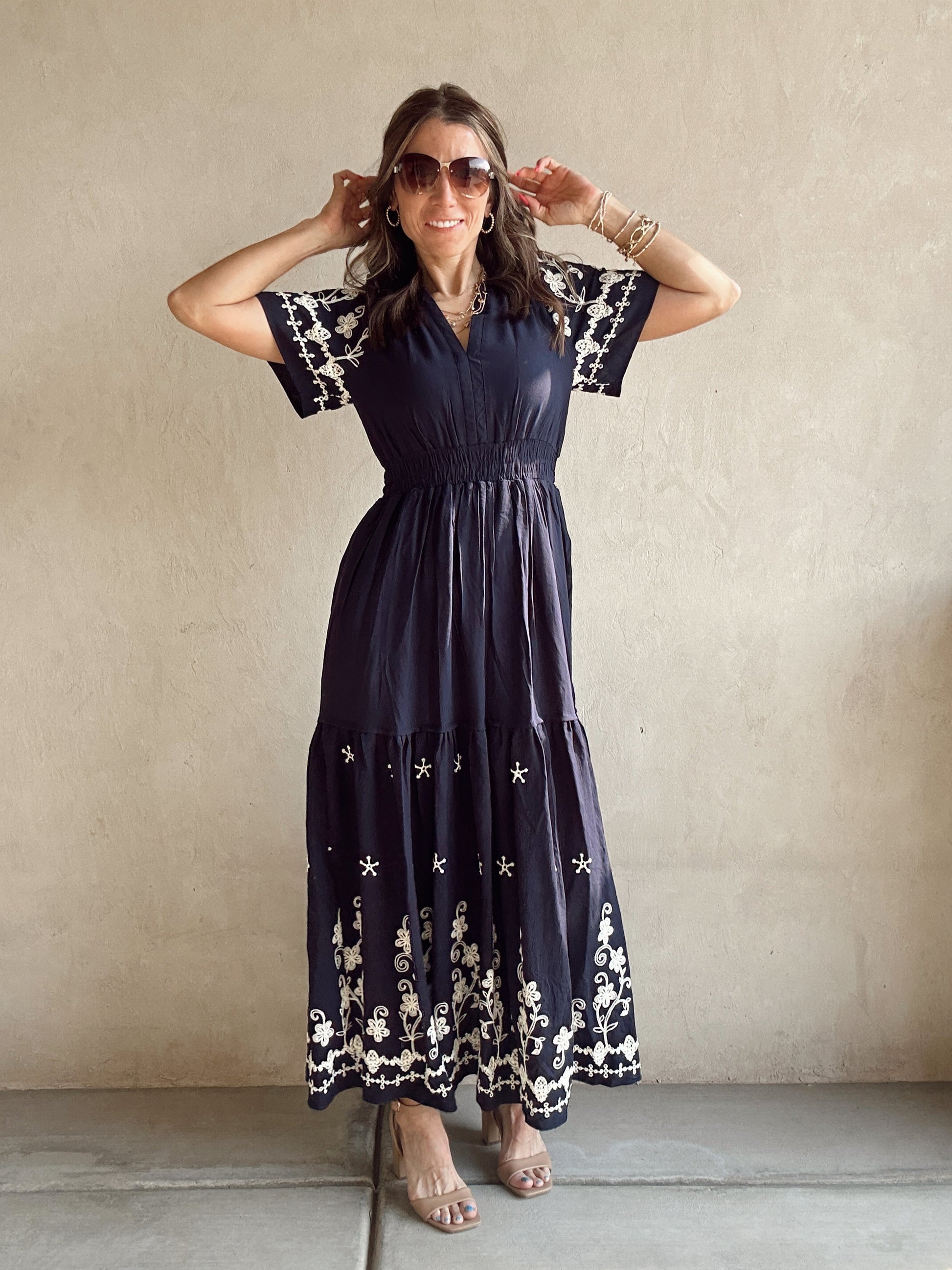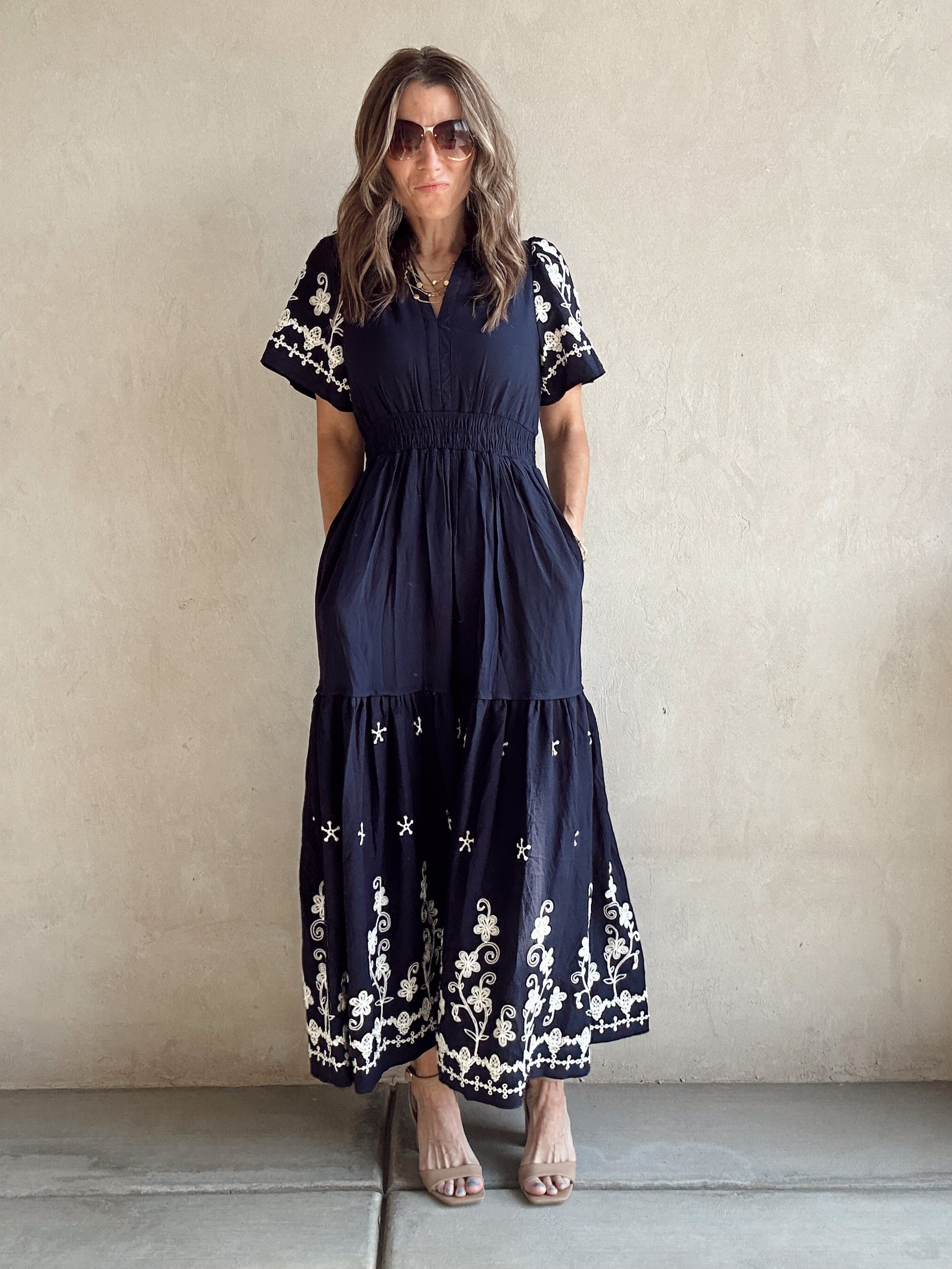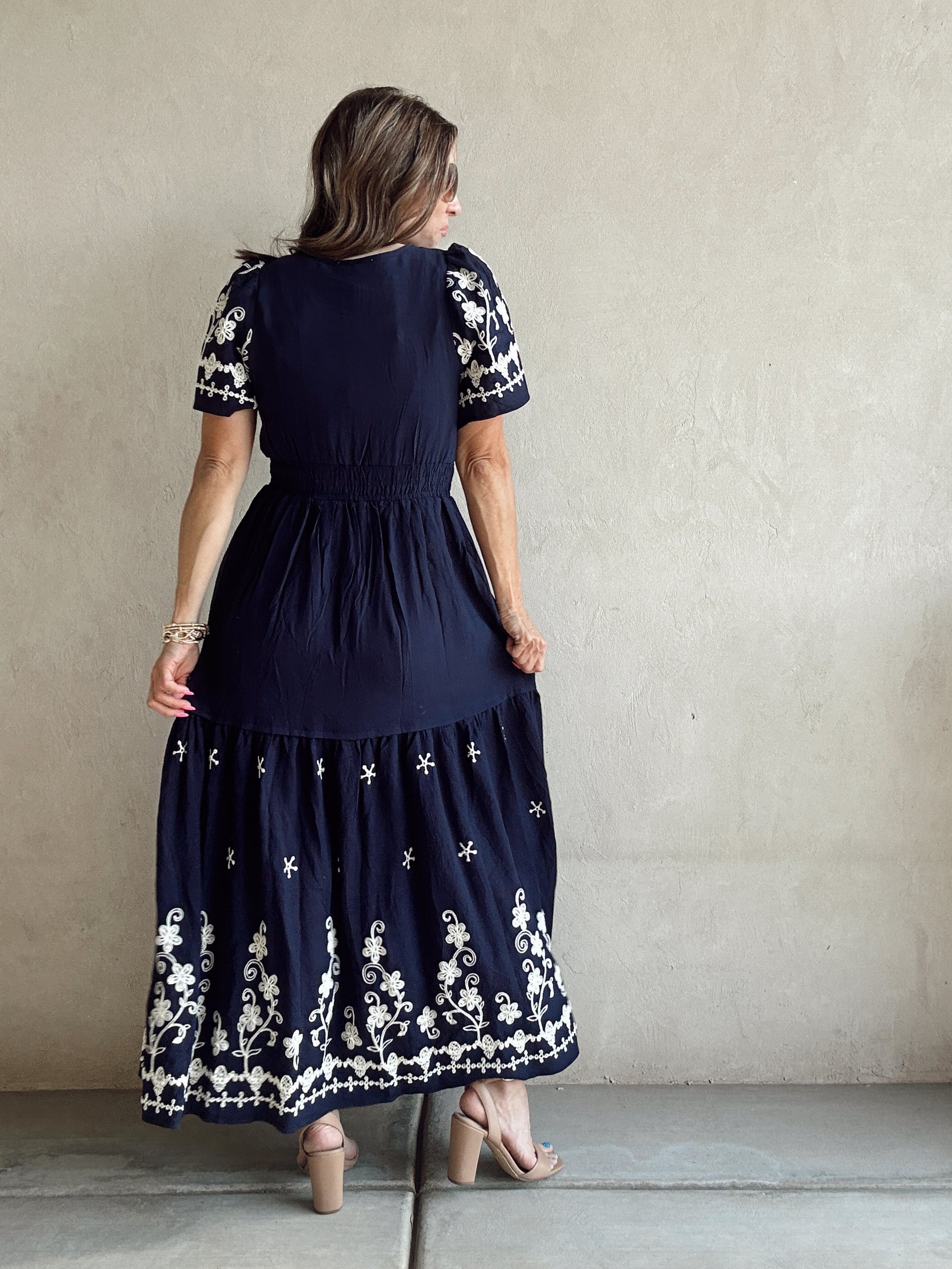 Pyper Embroidered Dress in Navy