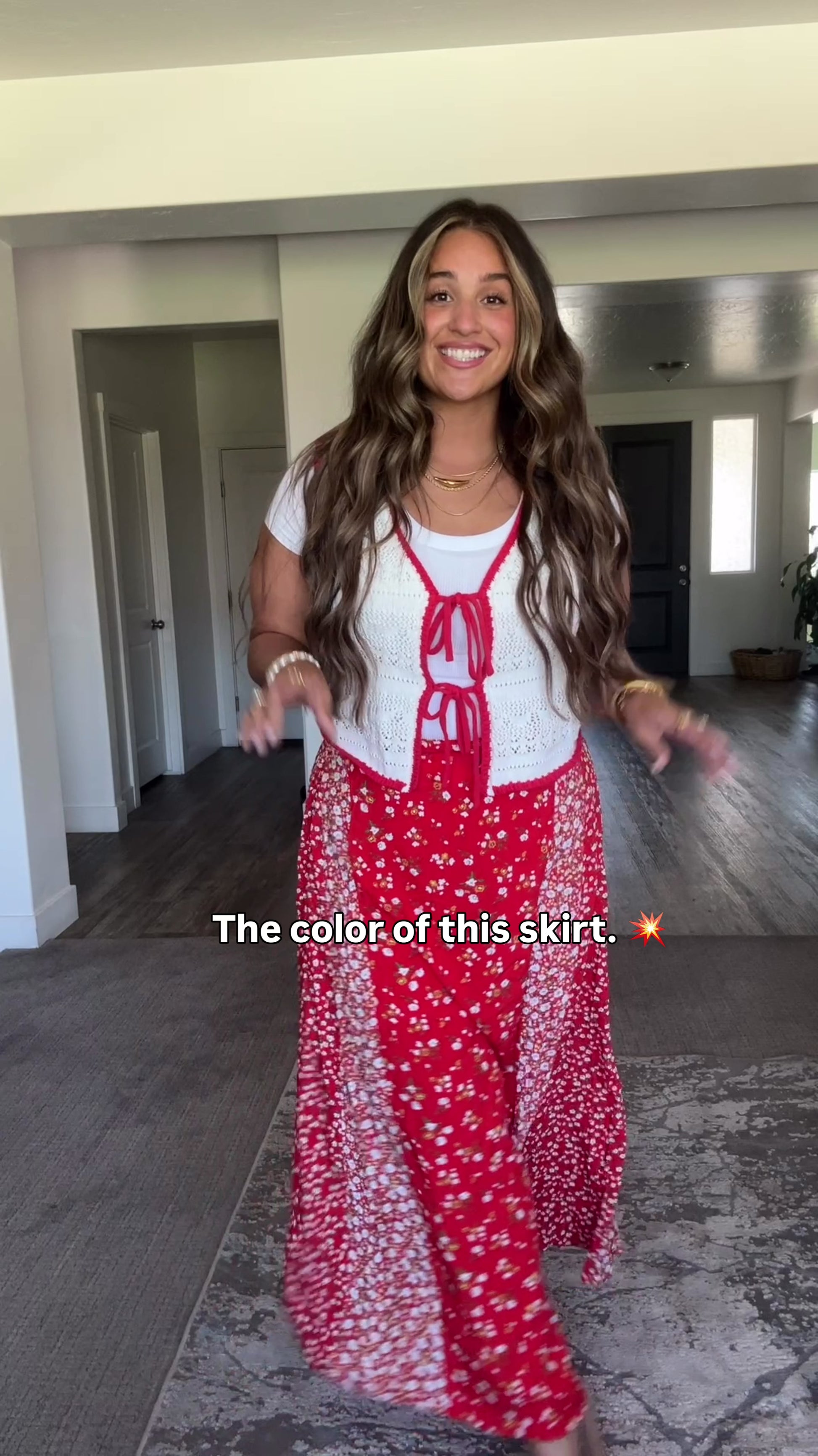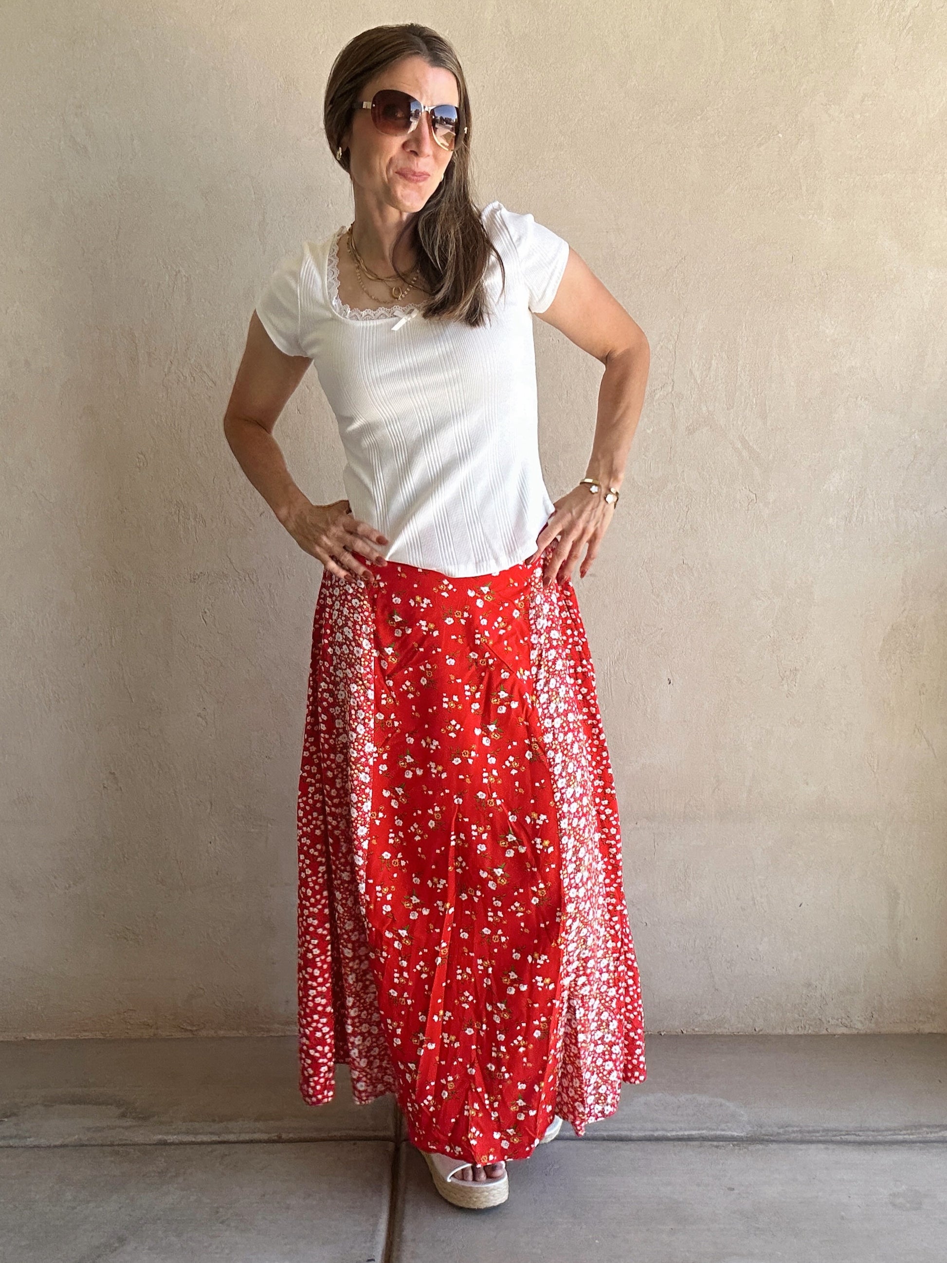 Randi Floral Skirt in Red