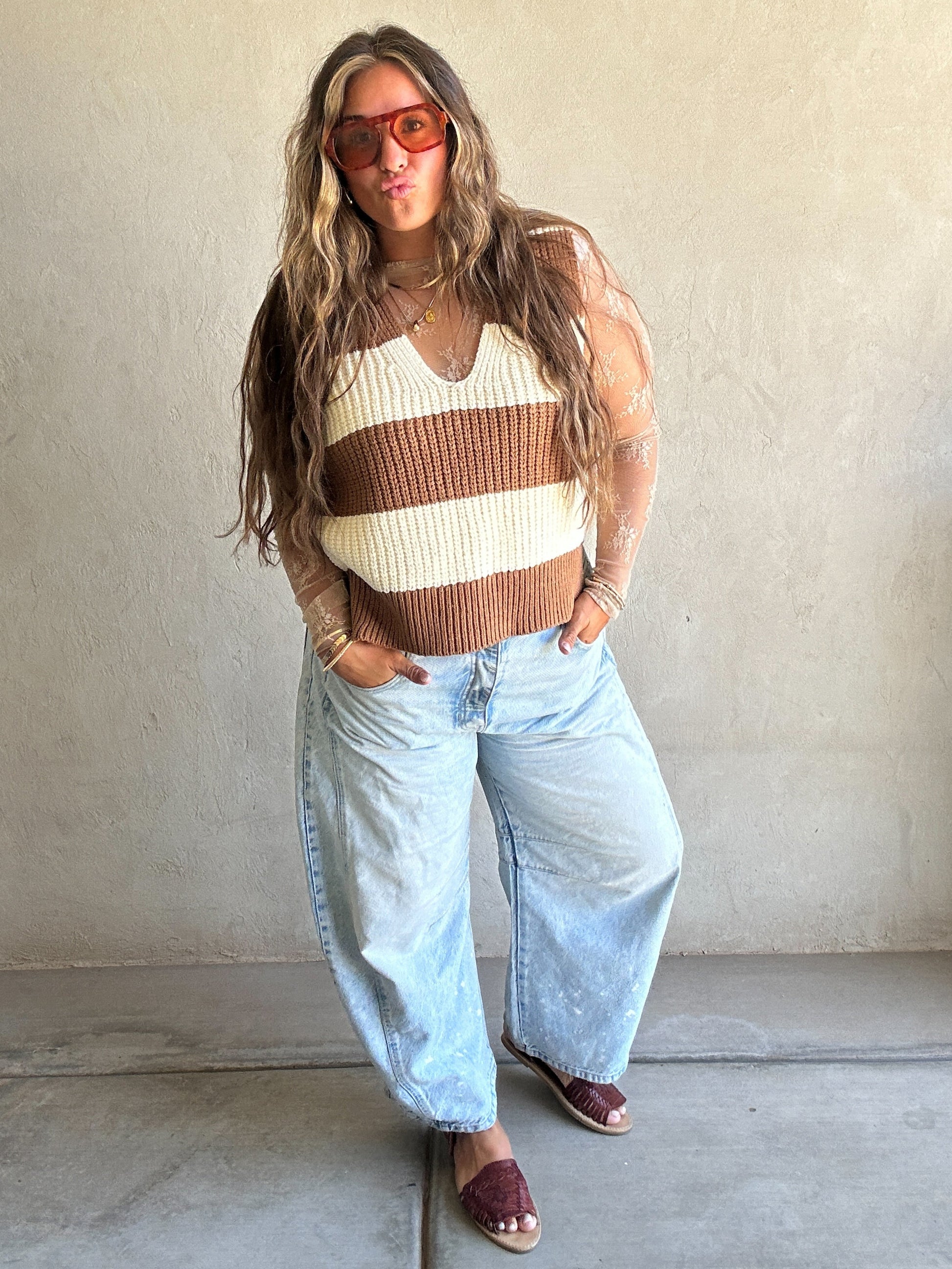Jentry Stripe Sweater Vest in Mocha & Cream
