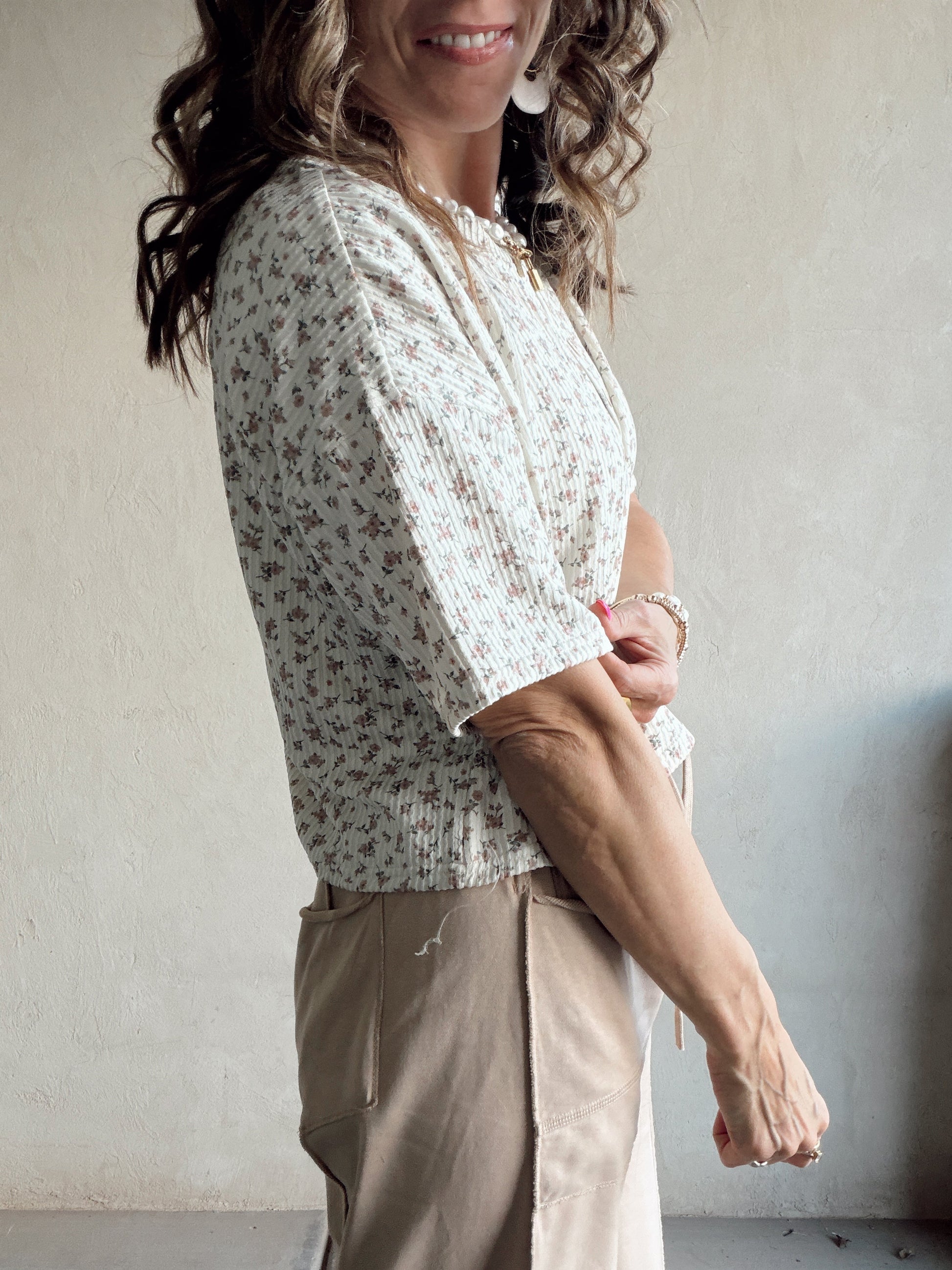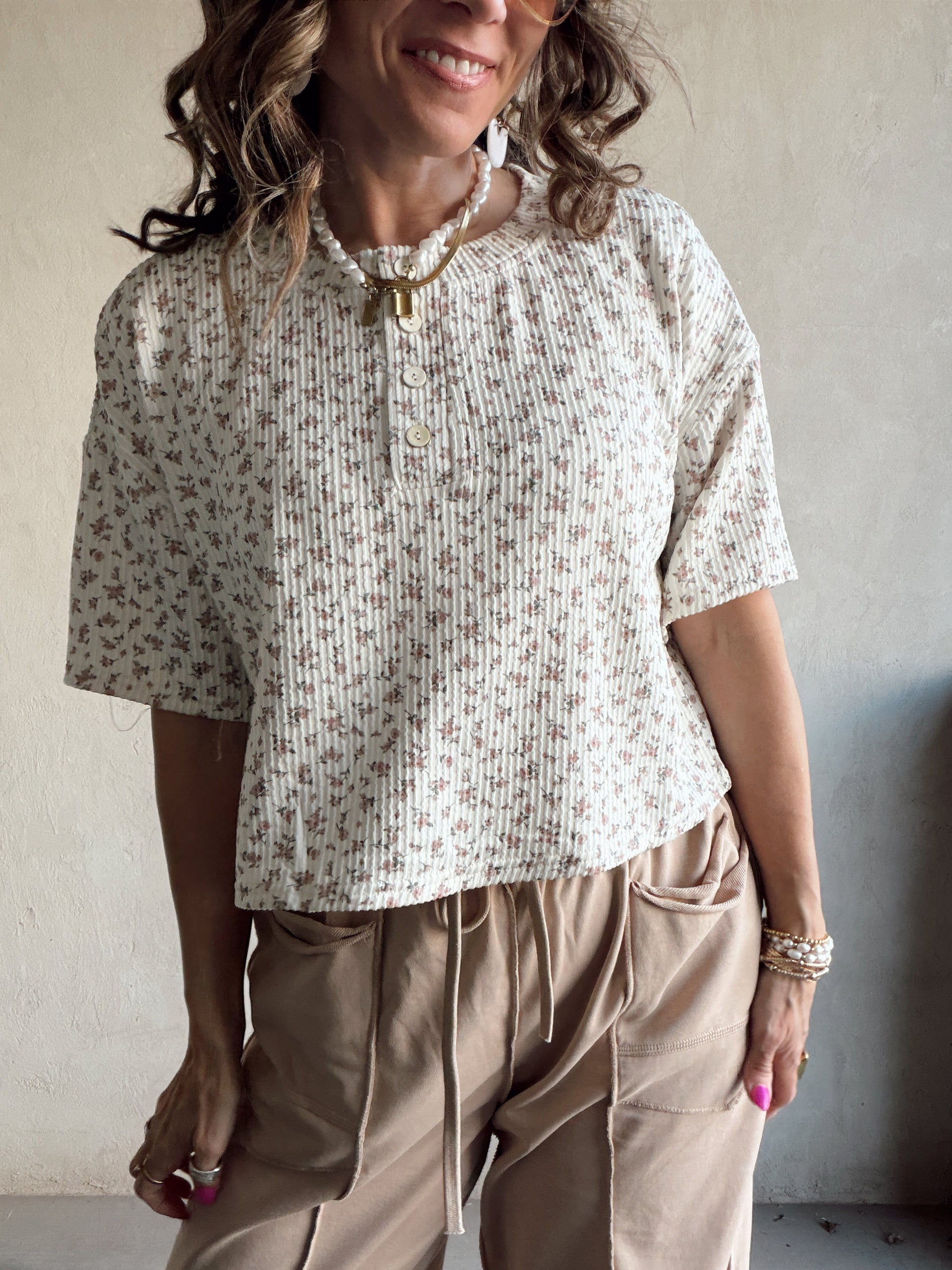 Luca Top in Tan & Mauve Floral