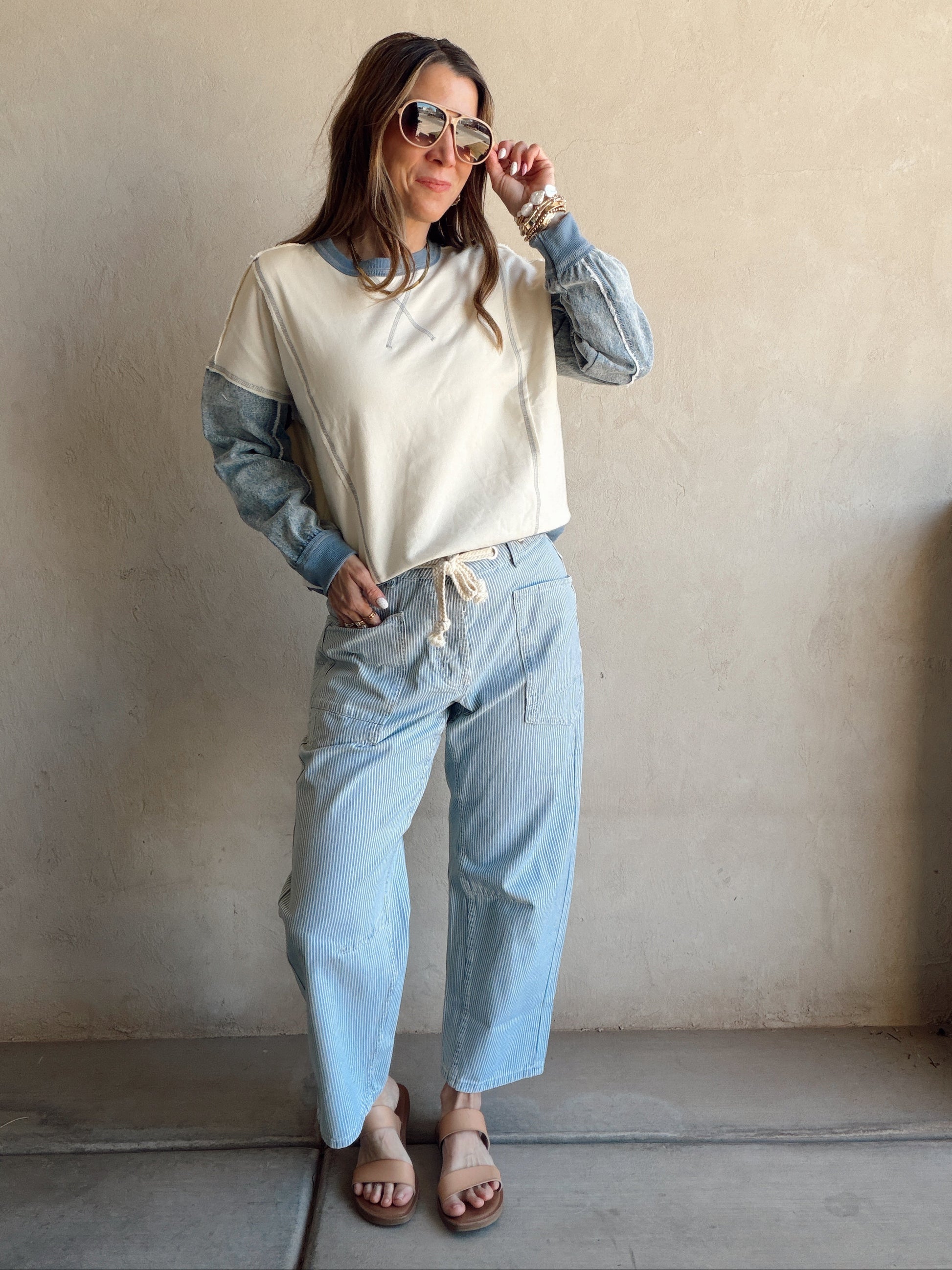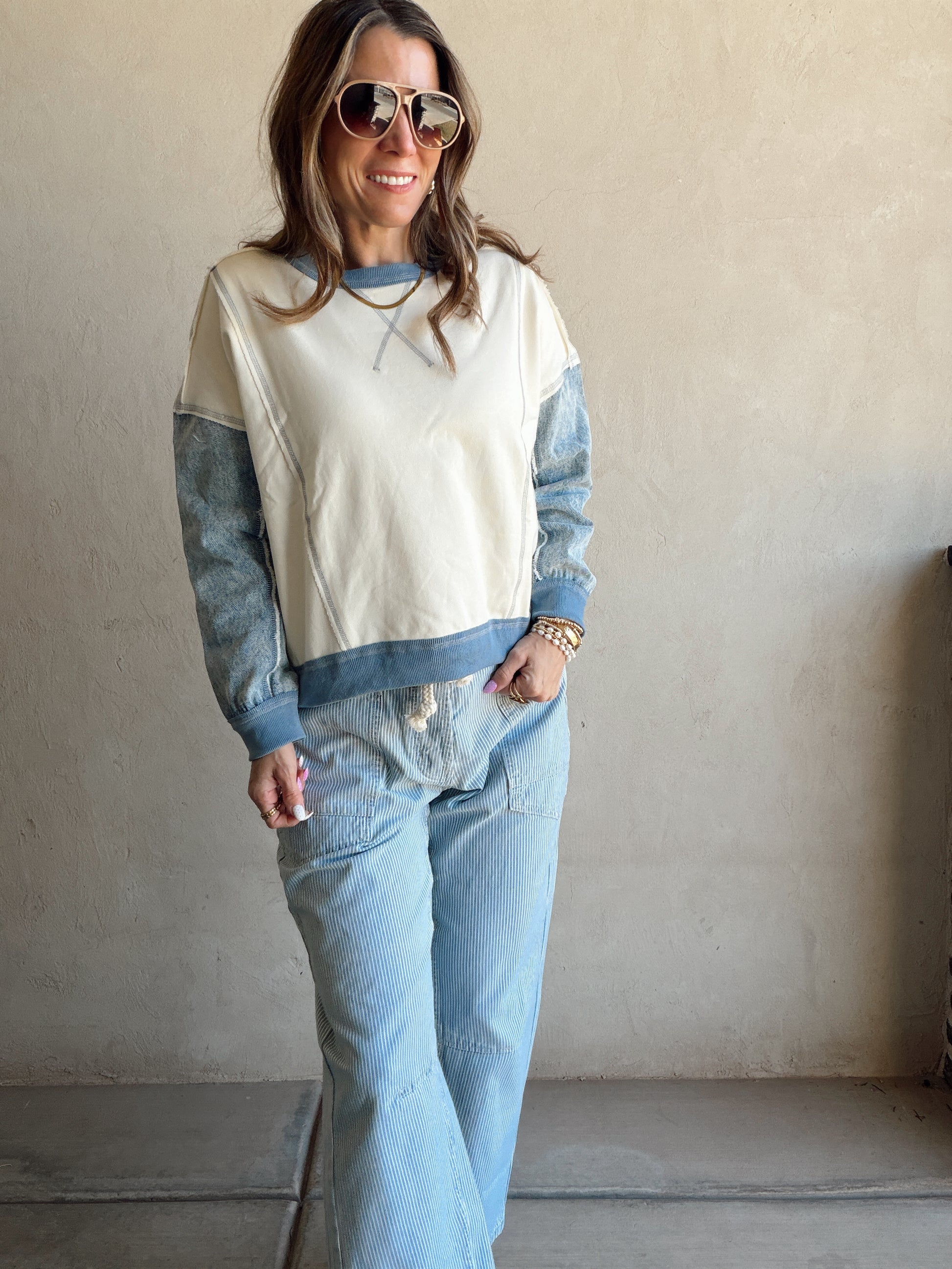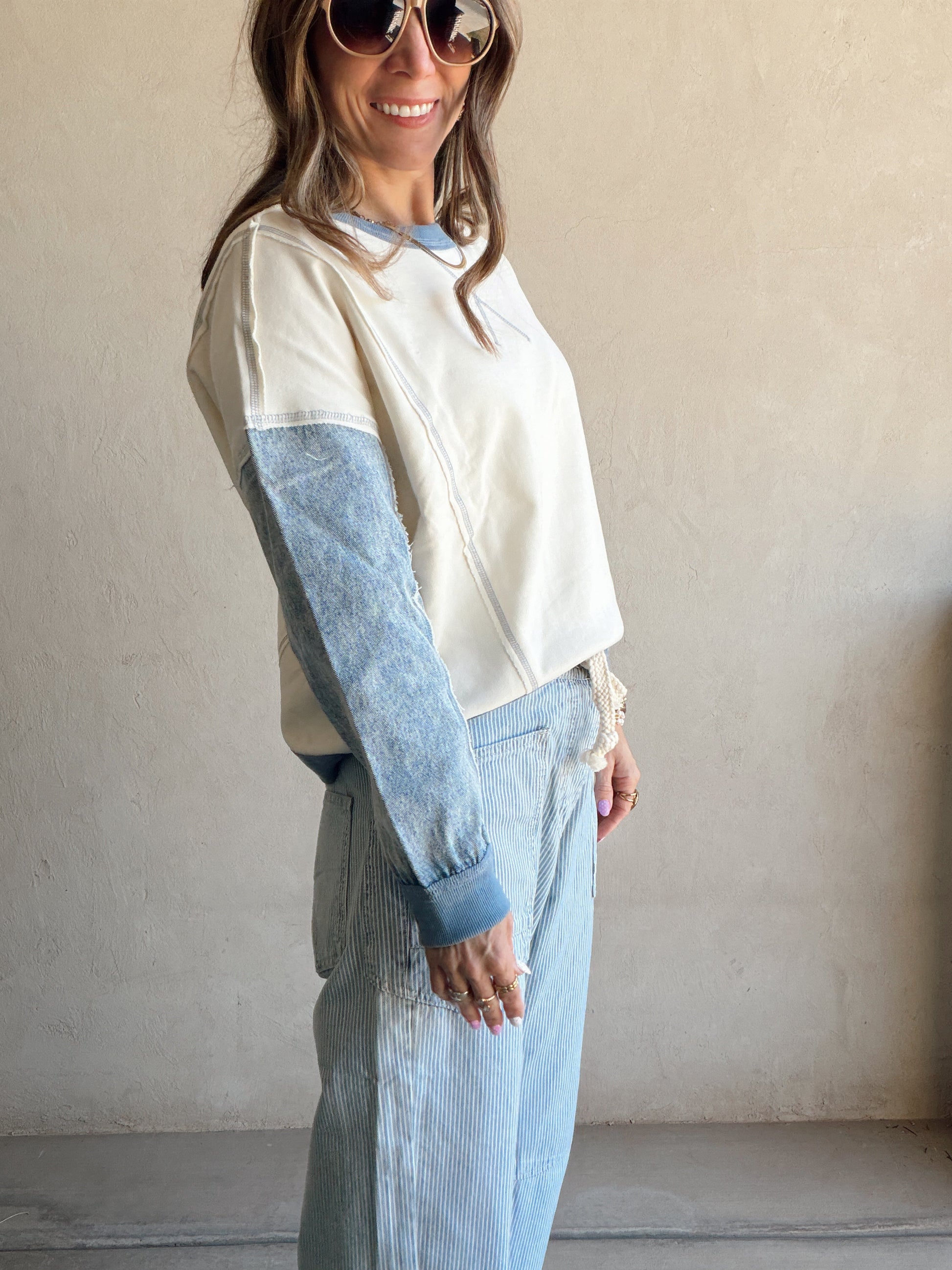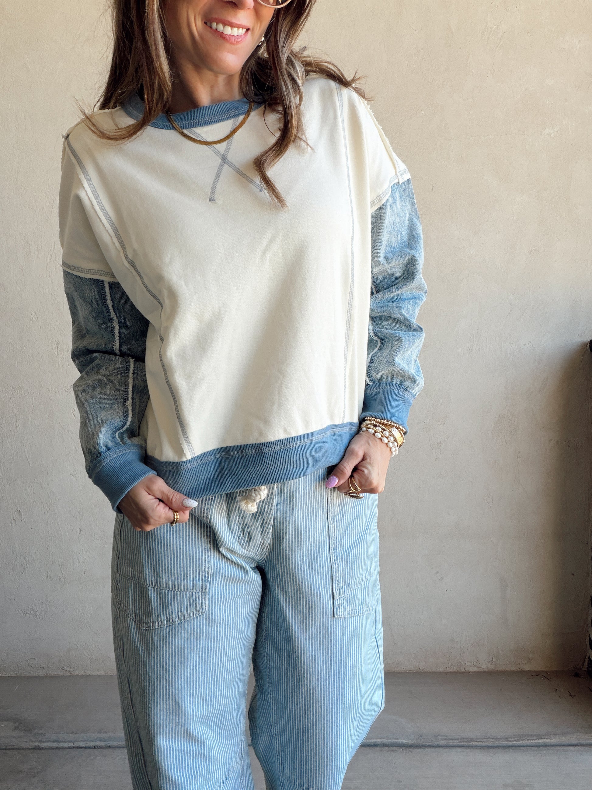 Jamie Pullover in Cream & Denim