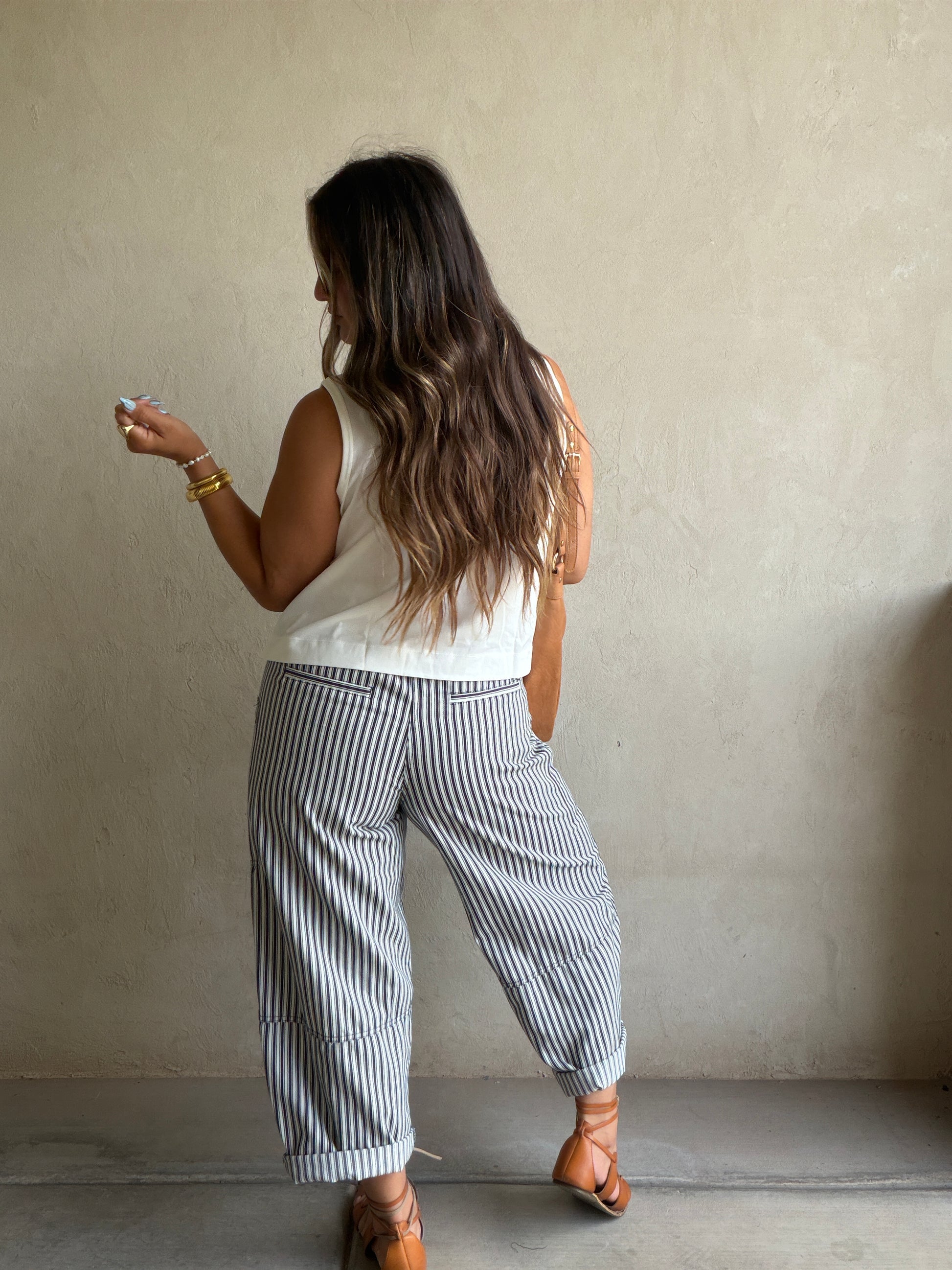 Striped Barrel Pant in Navy