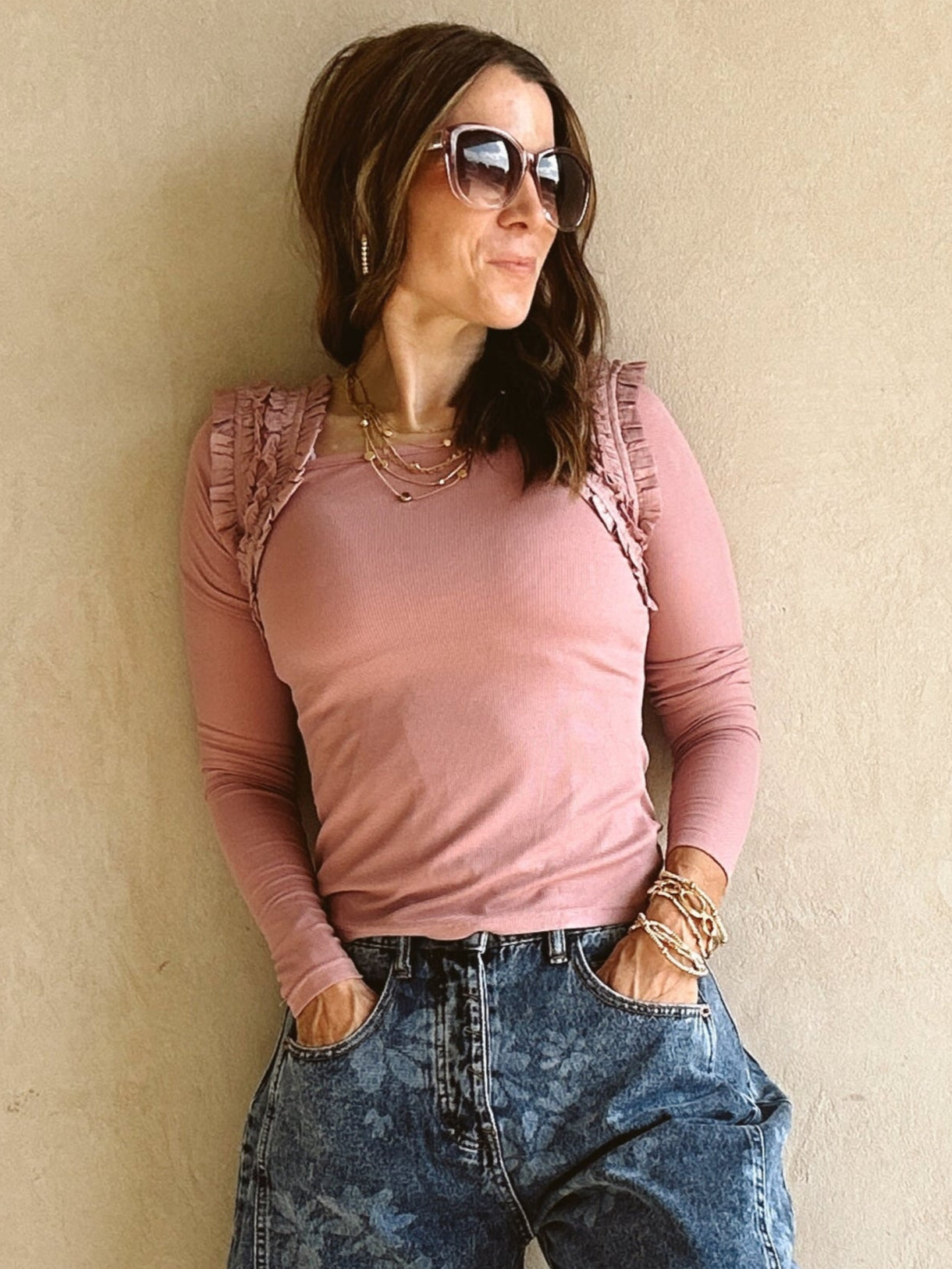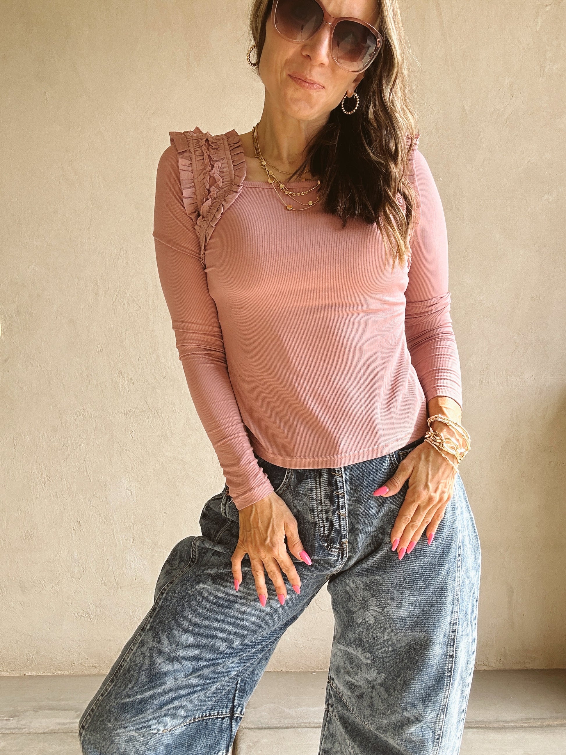 Ashley Square Neck Top in Mauve