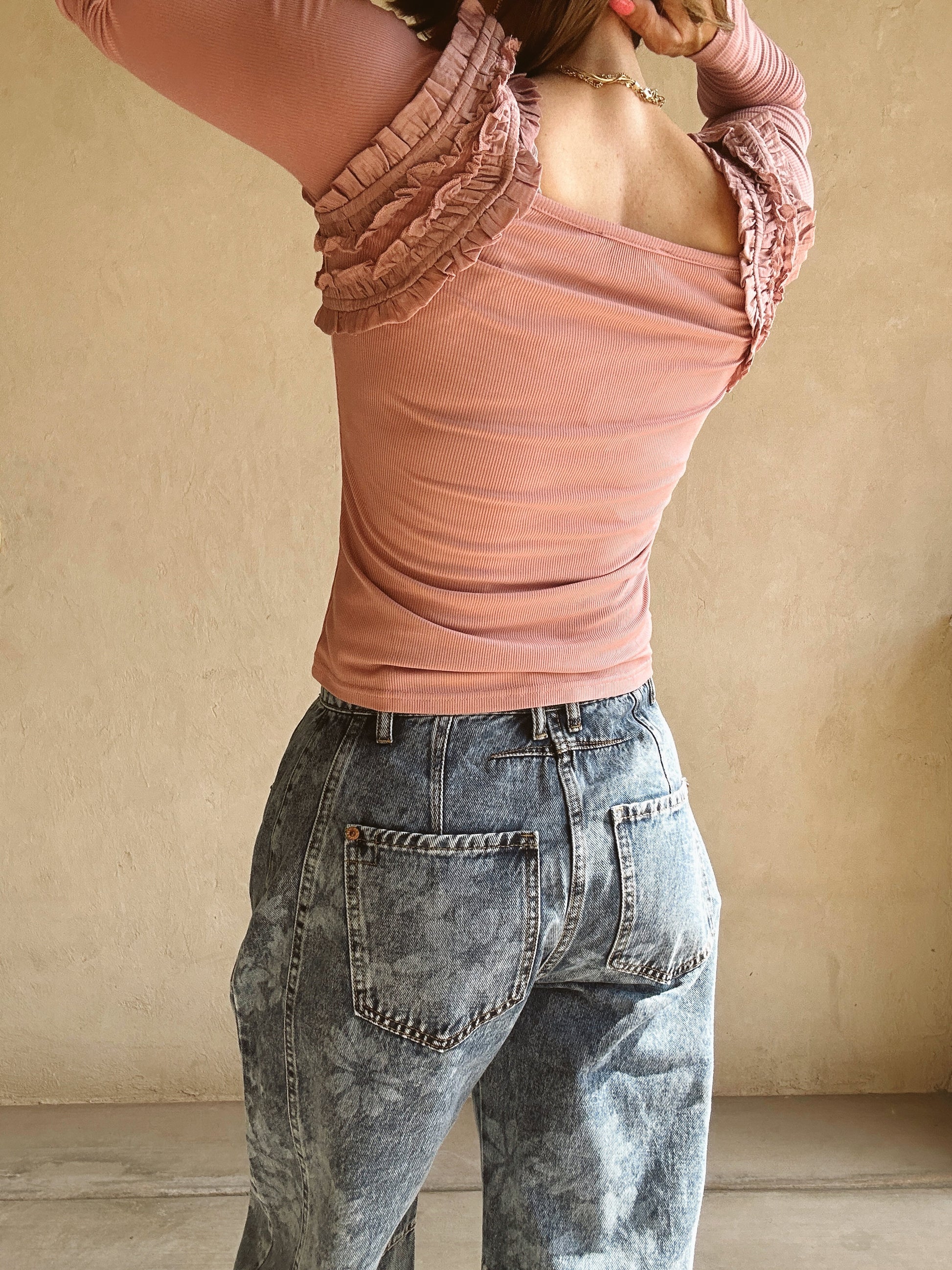 - Delicate ruffles on shoulders