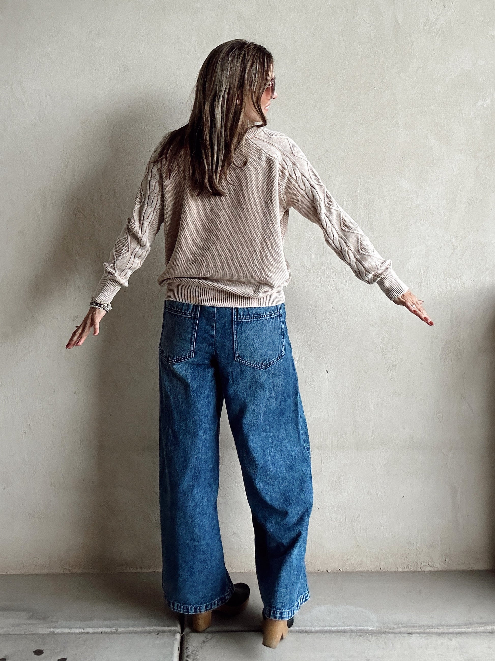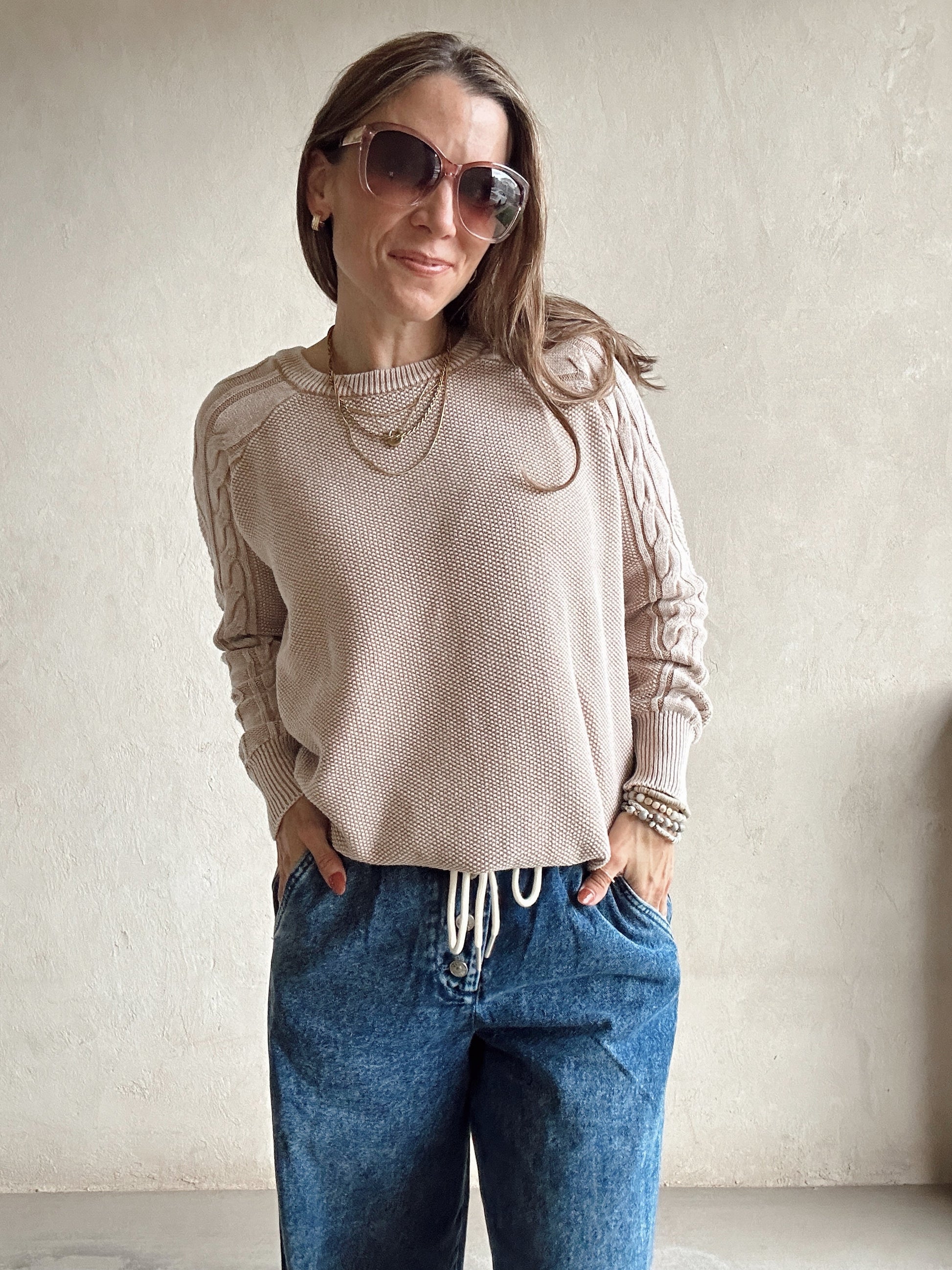 Saydi Cable Knit Sweater in Taupe