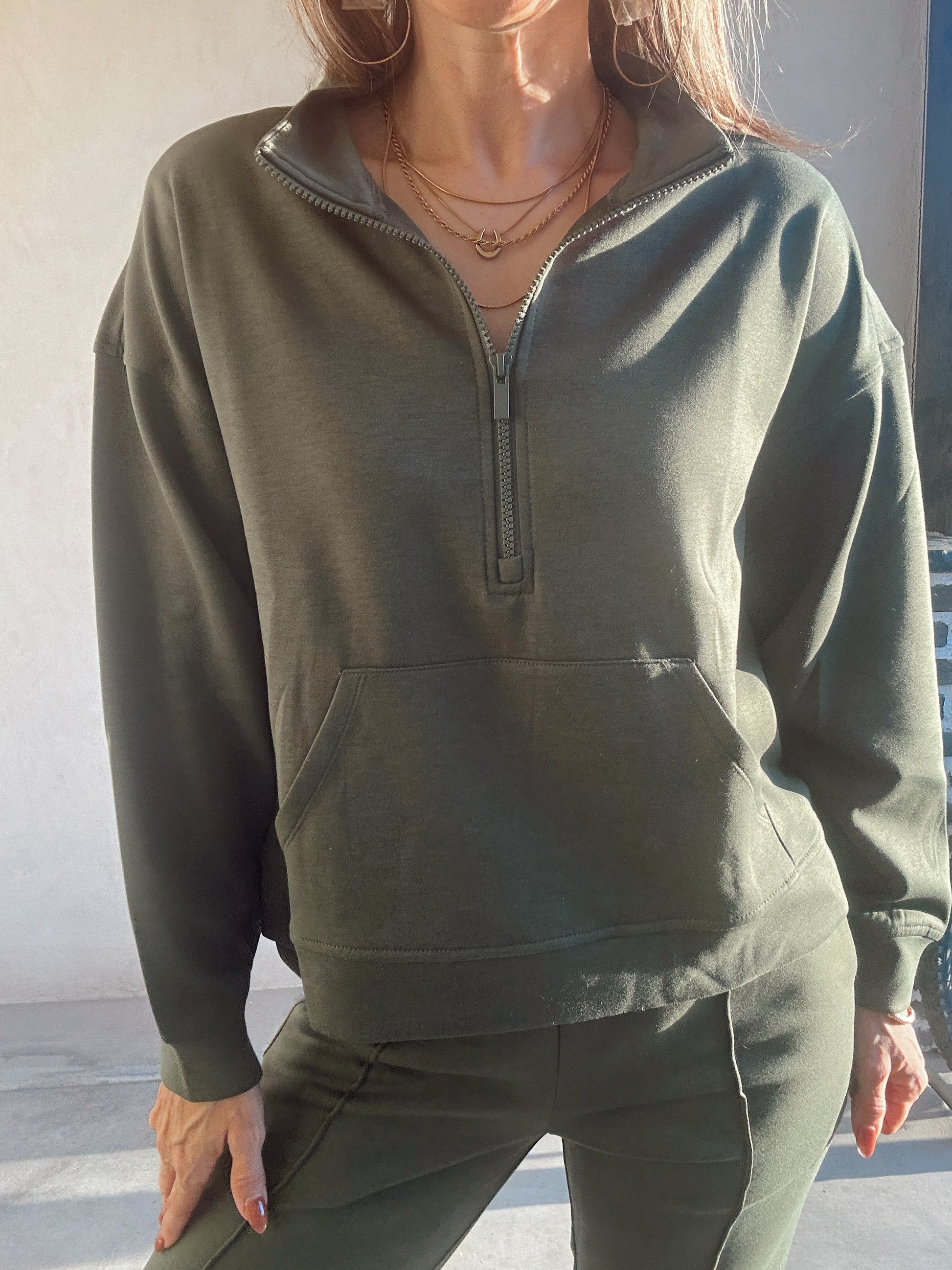 • Half-zip front