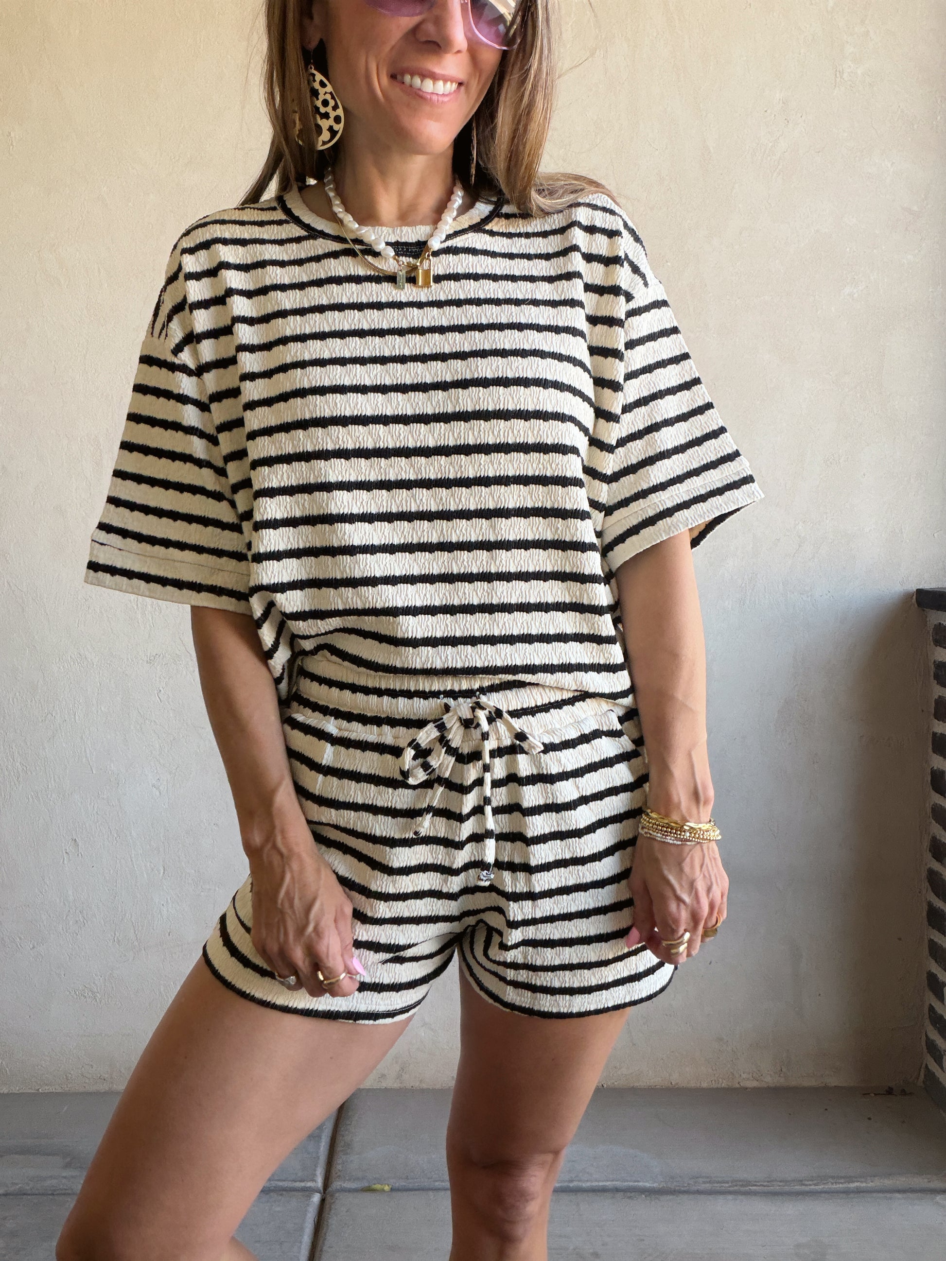 Kendall Striped Set in Black & Oatmeal